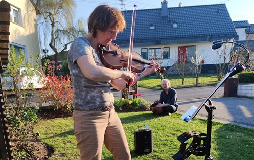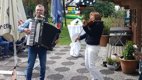 Trotz Corona haben wir natürlich musiziert. Mit Abstand haben wir den ein oder anderen Nachmittag unserer Biergartenterasse und der Straße Musik gemacht. Die Nachbarn waren fasziniert und spendierten das ein oder andere Stamperl.