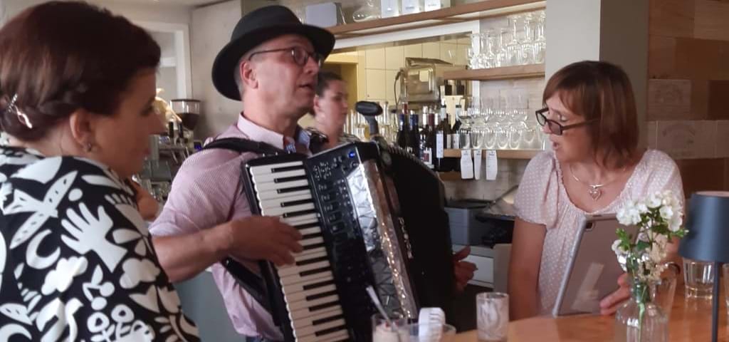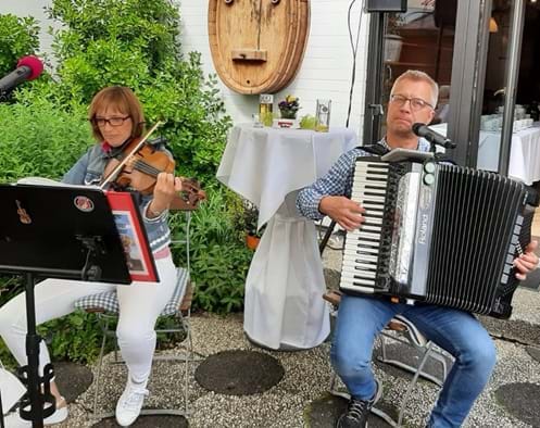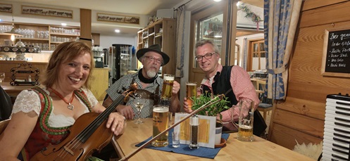 Zünftiger Gastauftritt im Berggasthof Sonne: Zusammen mit einem spontanen Gastmusiker an der Gitarre durften wir in "Sonne" in Imberg (im Oberallgäu) den Abend gestalten. Mit gehörigem Abstand zum Publikum hatten wir viel Spass bei den Inhabern Jörg und Elke Müller. Als Belohnung gab es einen Bierbraukurs und das ein oder andere Helle.... Vielen Dank für eine schöne Erinnerung.Urlaub im Allgäu