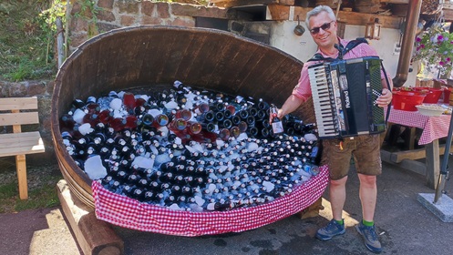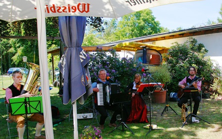 Traumhafter Auftrittsurlaub im Bergdorf Baderalm im Schwarzwald. Hier gabs zünftige Musik für eine Firmenfeier nicht nur von uns, sondern auch von unserem Freund Hein an der Trompete und Holger Landrock aus Köln mit seinen Bluesstücken und Pop-Stücken. Ein abwechlsungsreicher Tag in einzigartiger Atmosphäre. Der Berghof stammt von 1648 und wurde liebevoll und detailverliebt ins heute gerettet. Wahrlich ein Ort, an dem die Zeit stillsteht. Frühschoppen am Strandhaus (Heider Bergsee in Brühl)