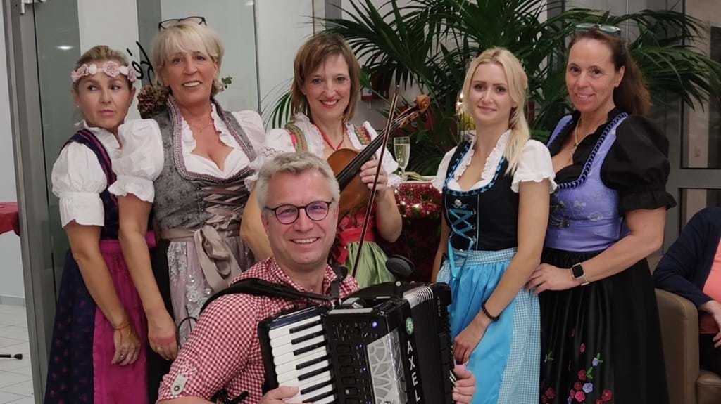 Es war mal wieder mächtig was los im Seniorenzentrum der AWO Saaler Mühle in Bensberg. Die Naafbachtaler Stubenhocker wurden gerufen und wir sind gerne gekommen und haben viel Spass gehabt. Alle Betreuer:Innen waren in hübscheste Dirndl gekleidet und sorgten für Speis und Trank. Nur Singen und Tanzen mussten die Bewohner selbst, was sie auch reichlich taten.