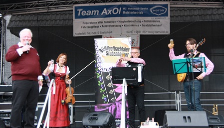 Nach unserer Premiere letztes Jahr vor der Bühne waren wir ganz besonders gespannt auf unseren Sprung auf die "Baacher Bühne". Es ist schon eine größere Dimension für unsere "Stubenmusik" und ein Erlebnis. Mit dabei war wie letztes Jahr Rigobert Becker am Bariton, der schon vorher im Neuhonrather Blasorchester die Kölsche Messe und den Frühschoppen mitgespielt hatte. Auch dabei Samuel Kunz an Trompete und Gitarre. Für den guten Ton sorgte Thomas Burchart. Es hat uns riesig Spaß gemacht und wir freuen uns aufs nächste Jahr!