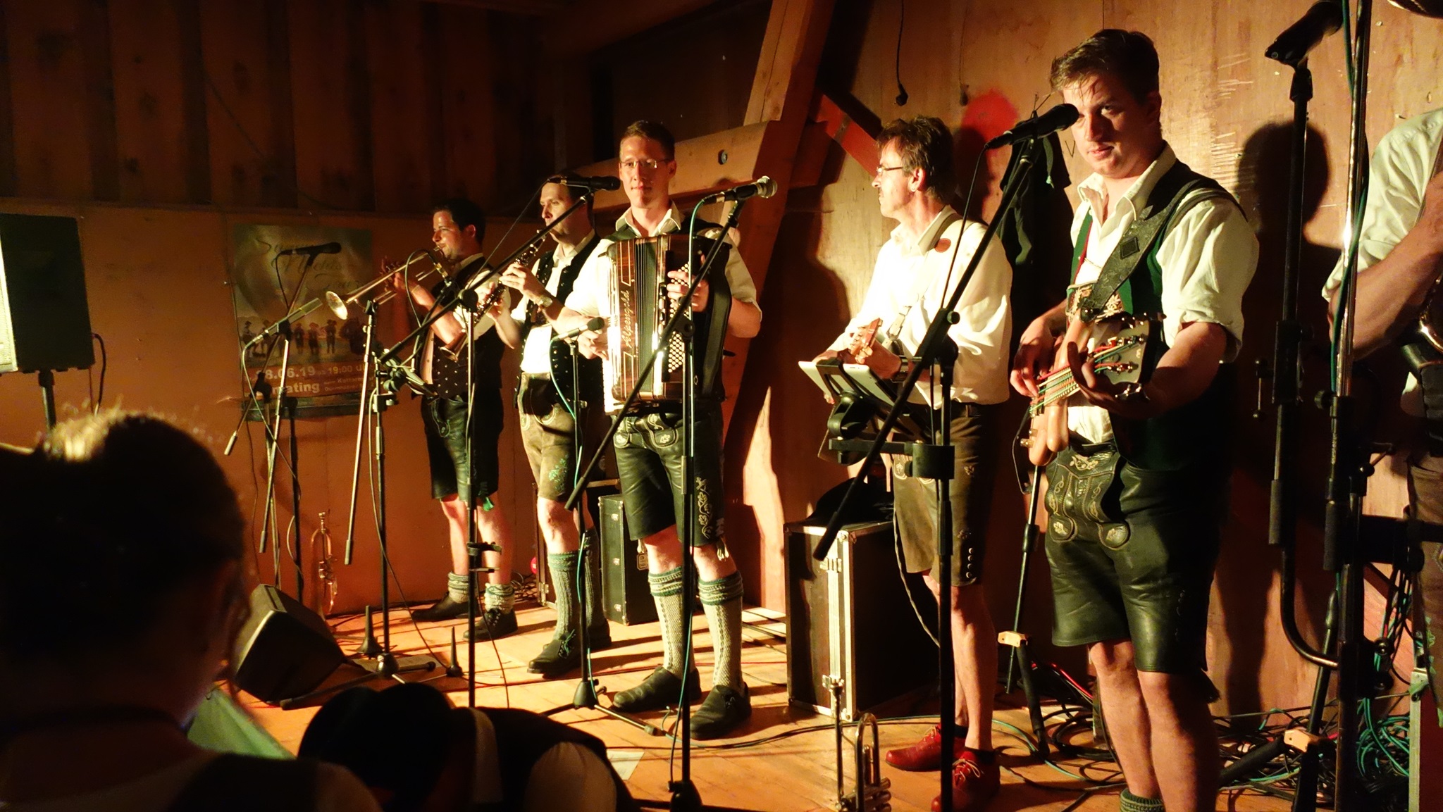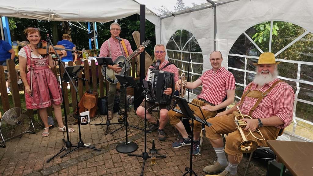 Bei leider ziemlich miesem Wetter haben wir im Strandhaus am Camping Heider Bergsee trotzdem gut eingeheizt. Fast drei Stunden haben wir unsere Alpenländischen und Kölschen Lieder gespielt. Unterstützt hat uns dabei unser Freund Samuel an der Gitarre. Dieser ist dafür ca 300 Kilometer gefahren. Also nicht nur für die Zuschauer war es ein Event, sondern auch wir hatten riesig Spaß.